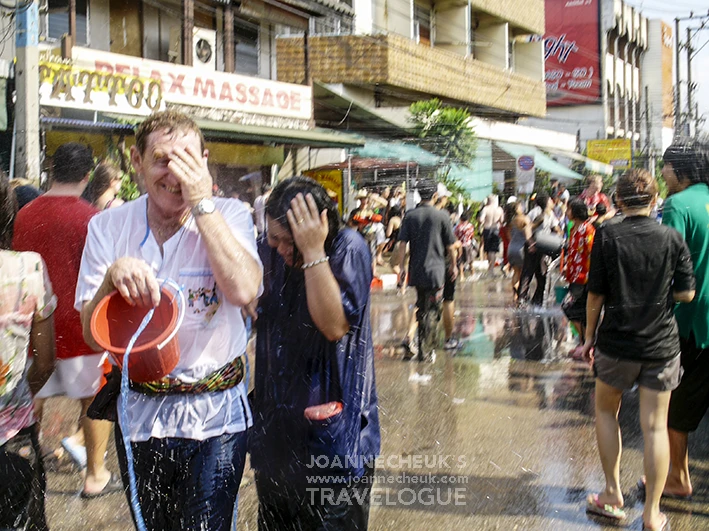 抱好玩的心看待,不要因被淋濕生氣,接受傳統泰國新年向他人祝福。